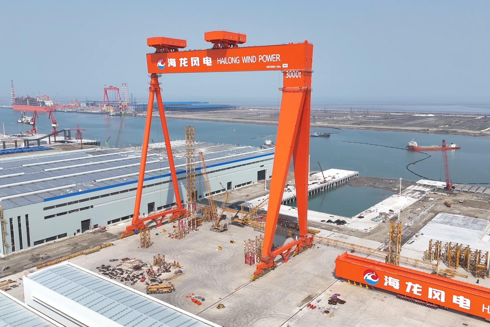 該門式起重機總起重量達3000噸,單小車起升能力1600噸,起升高度120米,跨度120米,相當于一次性吊運2000輛轎車至40層住宅樓的高度??梢詽M足超大型海上風電設備的吊裝需求,是名副其實的“國之重器”。